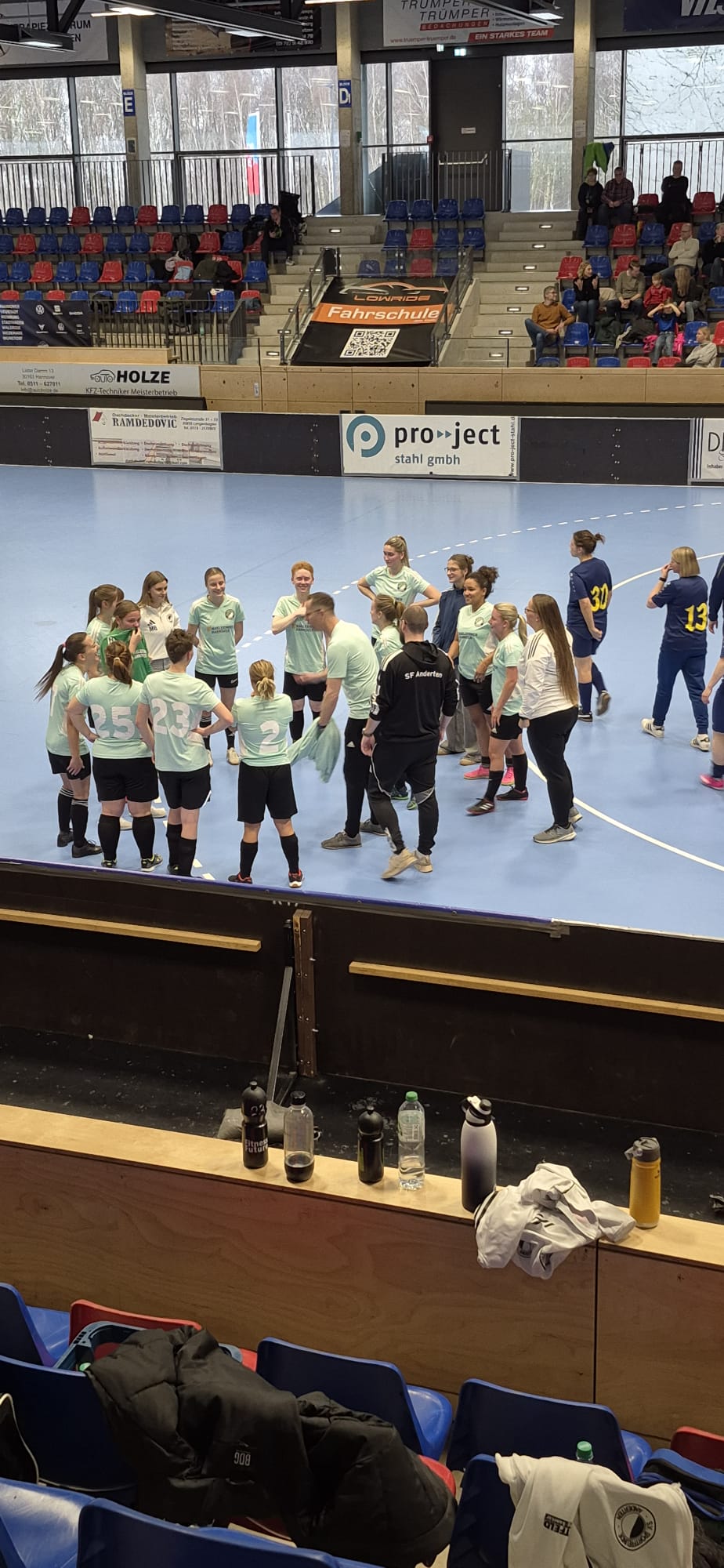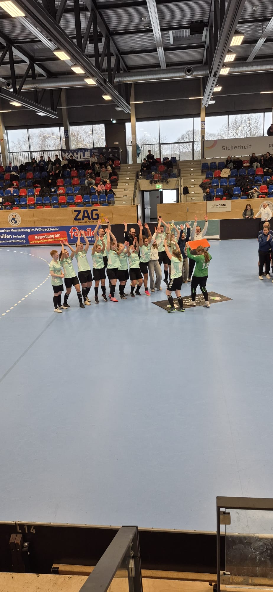 „Stellt es Euch einmal vor, den Pokal in die Höhe zu heben.“ […] „Nachdem wir im ersten Spiel verloren haben, traut uns das hier niemand zu.“ […] „… doch wir sind nur noch ein Spiel vom Erfolg entfernt – jetzt ist alles möglich!“, schworen die Trainer Daniel Dixon und Robin Rühmann Ihr Team auf das Finale gegen TSV Krähenwinkel-Kaltenweide ein.
